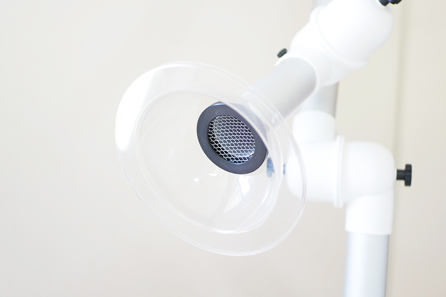 口腔外バキュームは歯を削ったり、入れ歯や銀歯を調整するときに出る歯の削りかすなどの粉塵を瞬時に吸い込むことができます。診療室内を清潔に保ち、院内感染のリスクを低減することができます。