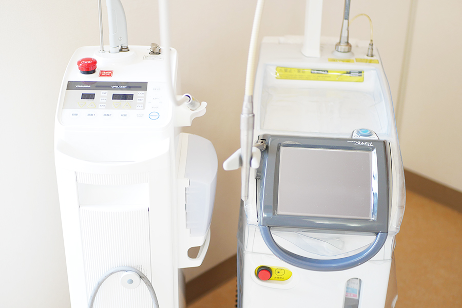 むし歯治療・知覚過敏・歯周病等の治療では、レーザー治療を行います。出血や腫れを抑えられますので、痛みが少なく、術後の回復も早まります。